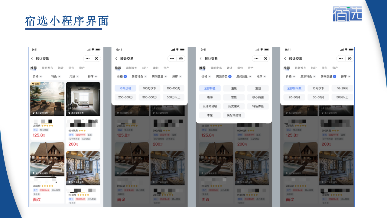 基于這樣的市場大背景之下,民宿界的“貝殼”——宿選交易平臺應(yīng)運而生,小程序計劃在4月下旬正式推向市場。