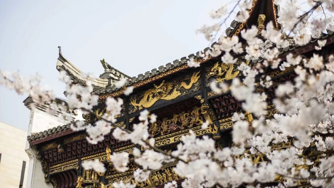 屋檐上五對翼角巧奪天工、瓦片、廊柱、飛檐上的雕塑惟妙惟肖、精妙絕倫。