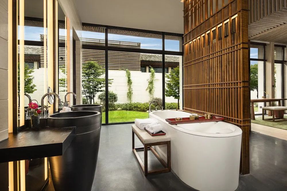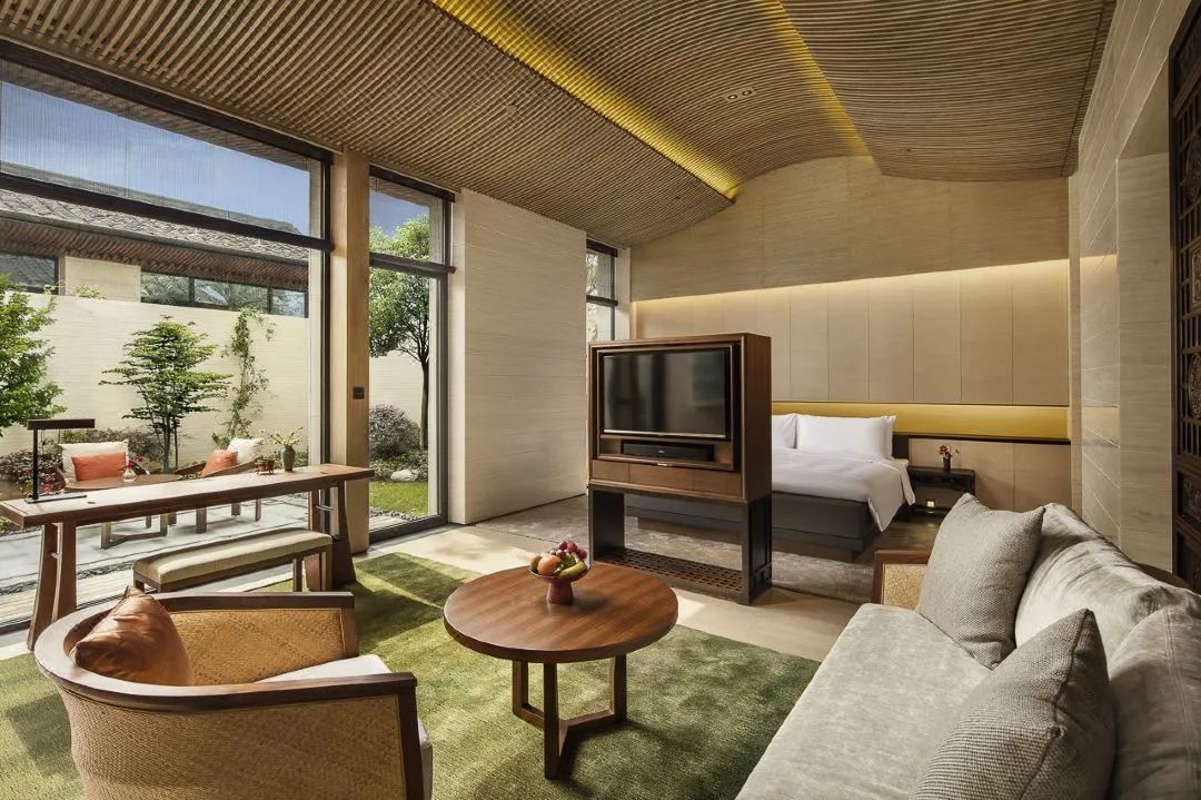 小而精致的35間別墅客房,每一間都獨具風格。不僅配有全景庭院景觀的套房及獨立專屬私人花園,屋頂還設計成水鄉烏篷船的拱形造型,極具江南風情。