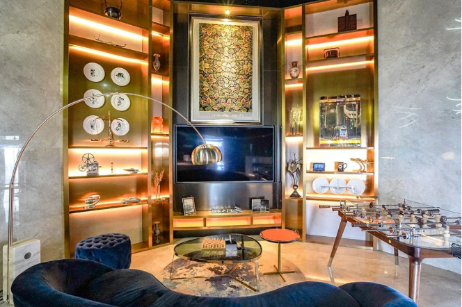 三層挑高的會客廳,奢華大氣;墻上陳列的展品,更是價值不菲。在這里,你將體驗上海的濃墨重彩與極致奢華。