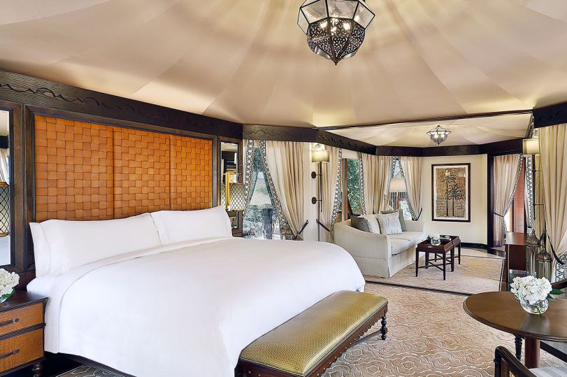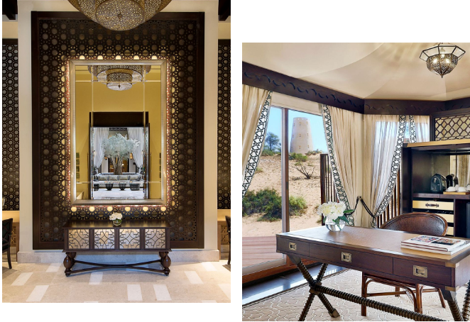 酒店設計將傳統貝都因游牧民居風格的帳篷屋頂與經典阿拉伯風格的別墅家具進行了現代詮釋,度假村無縫地融入沙漠環境。