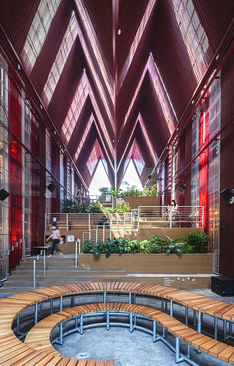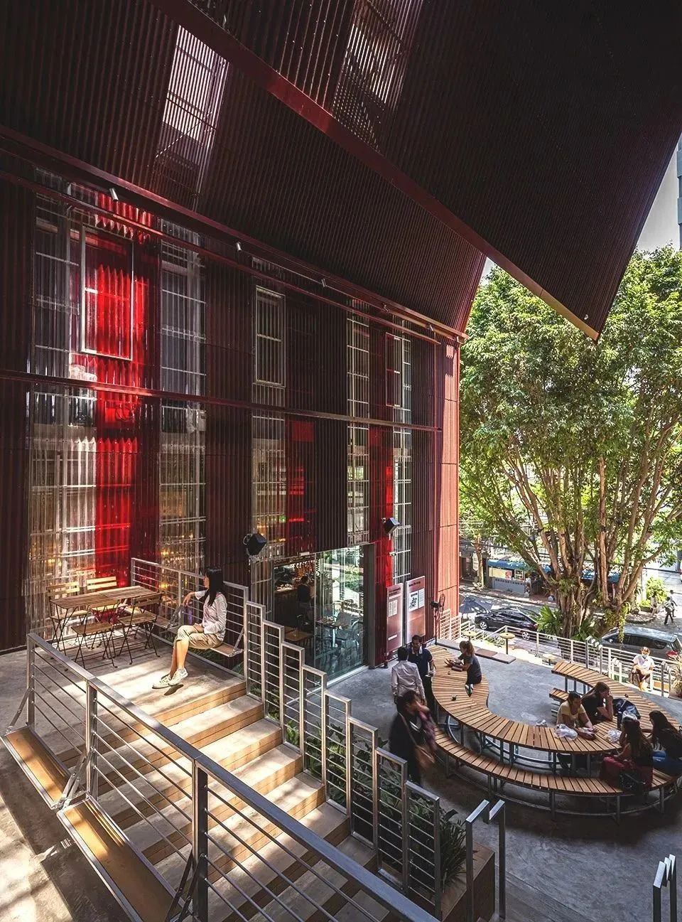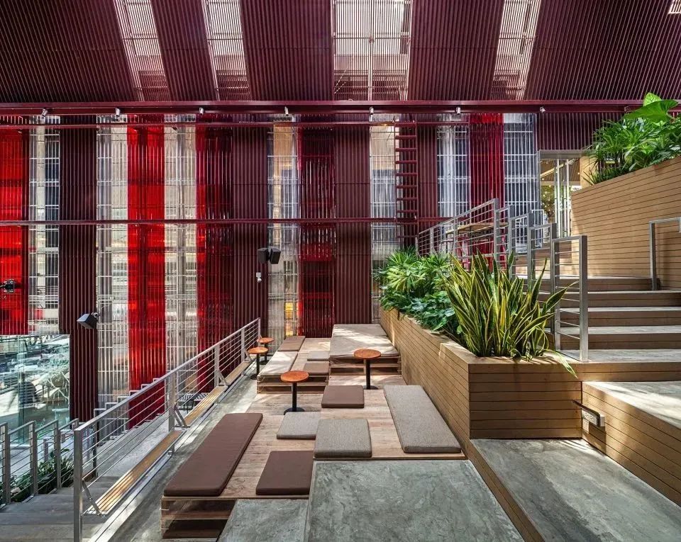 The Commons Saladaeng是The Commons在曼谷的第二座門戶,是一個(gè)集合了零售、餐飲等多種服務(wù)的社區(qū)型商業(yè)綜合體。項(xiàng)目位于曼谷熱鬧而繁華的Saladaeng街區(qū),意為“紅色的亭子”。早在一百年前,場(chǎng)地中曾坐落著一座擁有紅色斜屋頂?shù)男』疖囌荆翘﹪?guó)第一條鐵路上的標(biāo)志性建筑。而本次的設(shè)計(jì)也意在向這段鮮為人知的街區(qū)歷史致敬。